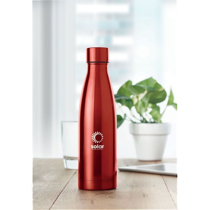 Термос-бутылка вакуумная двустенная из нержавеющей стали. Объем 500 мл. При гравировке металлической части корпуса вскрывается темно-серебристый матовый цвет.