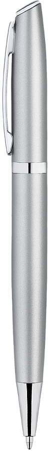 Корпус металлизированный матовый. Наконечник, кольцо и верхняя часть пластиковые, хромированные.