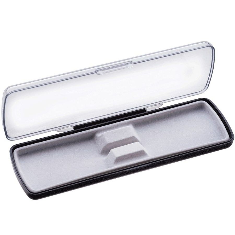 Пластиковый футляр для одной ручки с прозрачной крышкой. Флокированный ложемент с держателем для ручек от 9 до 10 мм. На крышку футляра можно нанести логотип.