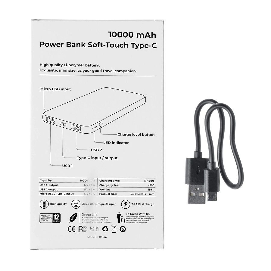 Компактный внешний аккумулятор "Energy" с покрытием корпуса soft-touch (софт-тач). Гарантия 12 месяцев с момента продажи.