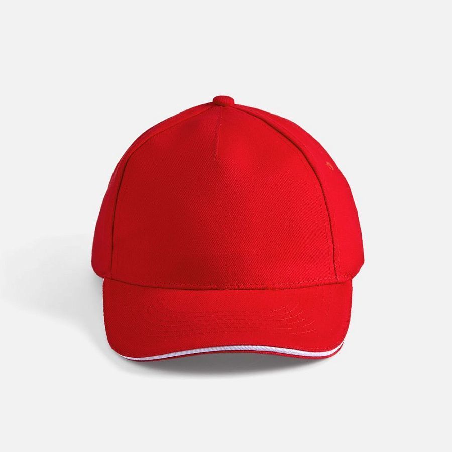 Модель бейсболки с 5-ю клиньями без лобового шва из плотного чесаного хлопка.