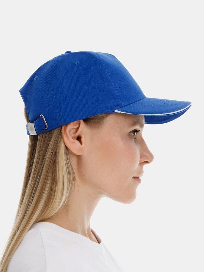 Модель бейсболки с 5-ю клиньями без лобового шва из плотного чесаного хлопка.