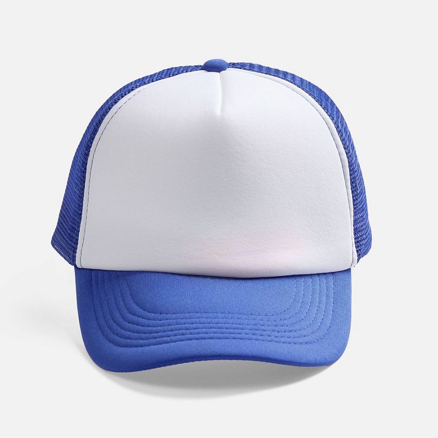 Бейсболка с 5 клиньями из сетки. Поролон в переднем клине (5 мм) и козырьке (3 мм). Регулируемая пластиковая застежка.