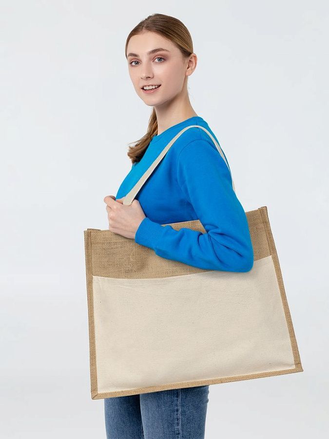 джут, плотность 240 г/м²; ручки, карман - хлопок, плотность 280г/м²