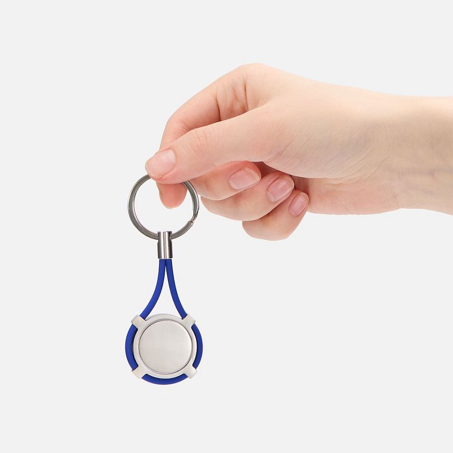 Элегантный круглый металлический брелок с декором из силикона.