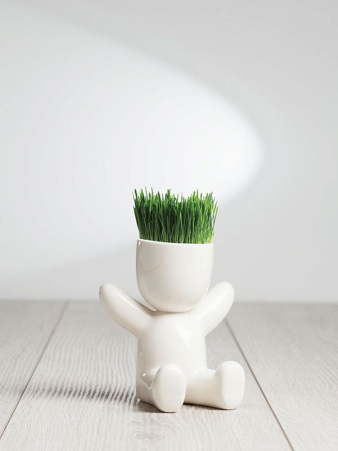 Фигурки Funky — экологичное украшение интерьера, кусочек зеленого газона в офисе или дома. Посадите волосы-травинки и наблюдайте, как меняется человечек. Вы можете сделать ему стильную стрижку, добавить настроения, нарисовав маркером лицо, — и поменять образ, когда трава снова подрастет.