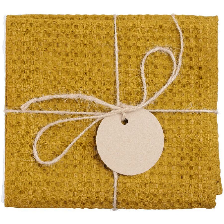 В набор входят 2 кухонных полотенца, перевязанных бечевкой с картонной биркой, на которую можно нанести логотип.