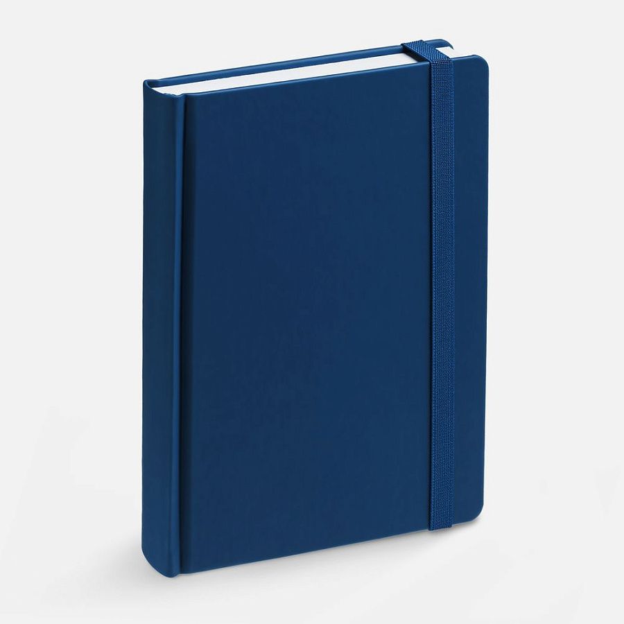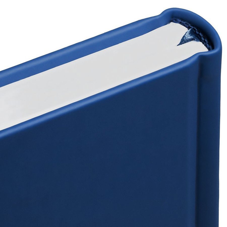 Ежедневник с твердой обложкой без поролона, выполнен из материала Soft Touch Ultra, синий НН, дополнен резинкой шириной 1 см, петлей-резинкой для ручки, капталом и ляссе синего цвета.