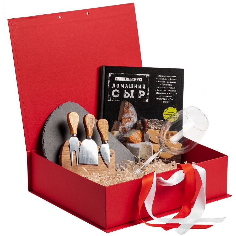Коробка выполнена из переплетного картона, кашированного дизайнерской бумагой Magic, с крышкой на лентах.