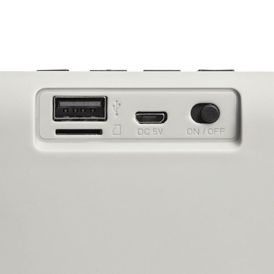 Колонка Borsetta умеет проигрывать музыку через Bluetooth, с USB-флешки, карты microSD и принимать радиоволны в FM-диапазоне. Благодаря дополнительному басовому излучателю колонка звучит объемно и сочно, а современный дизайн корпуса с покрытием софт-тач и фактурной акустической тканью не позволит ей остаться незамеченной.