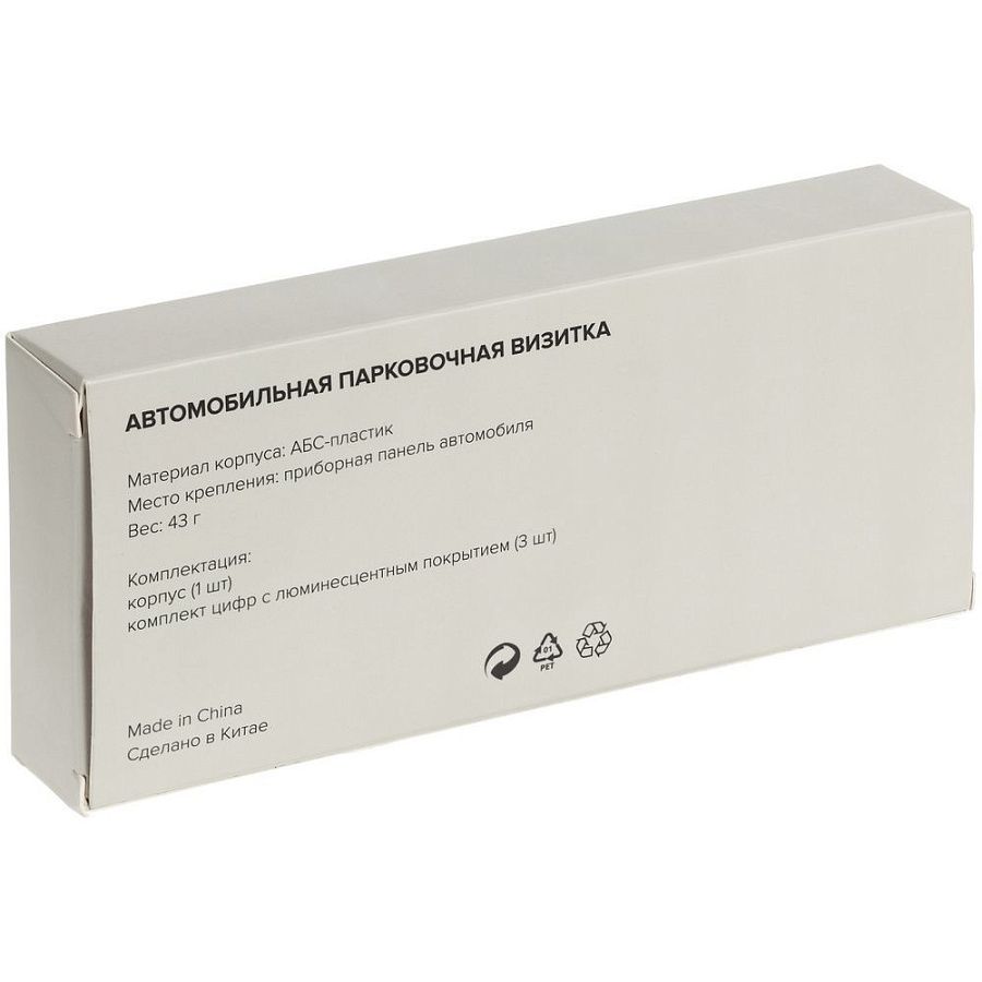 В наборе подставка с клейким основанием и комплект магнитных символов — при изменении номера телефона данные на визитке легко скорректировать.