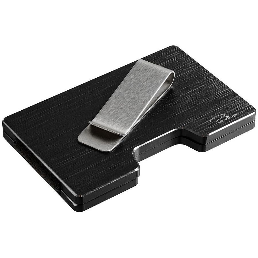 Две части футляра с RFID-защитой соединены резинкой, что позволяет использовать его для большого количества карт. Футляр вмещает до 25 пластиковых карт или до 70 визиток.