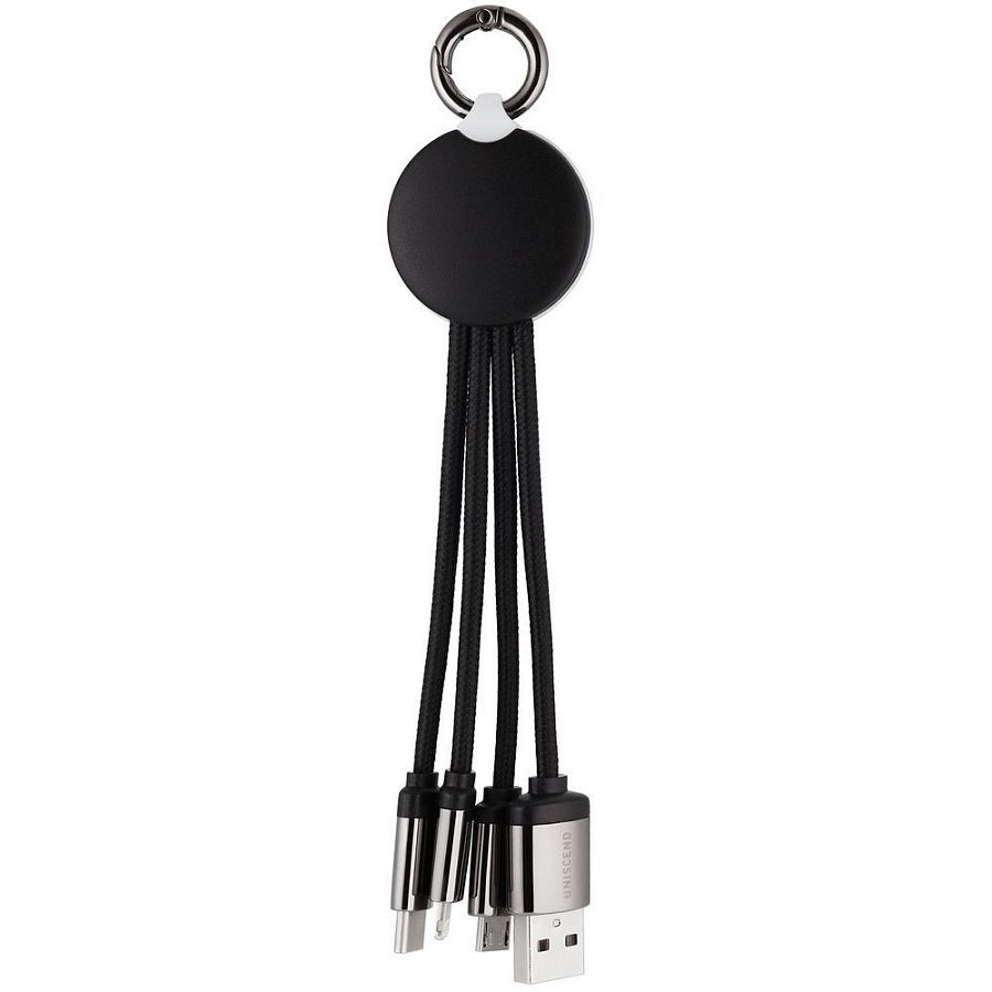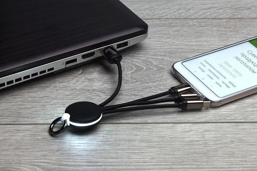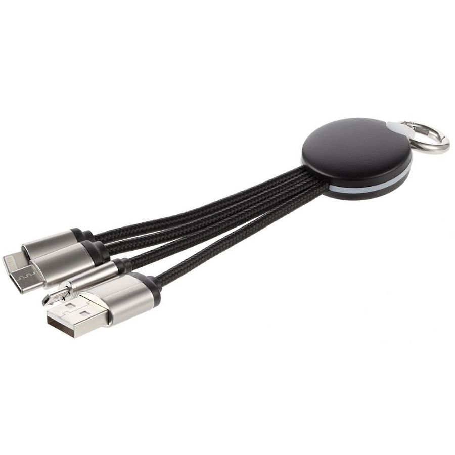 Кабель предназначен для зарядки устройств с разъемами Type-C, Micro USB и Lightning. Передача данных не поддерживается.