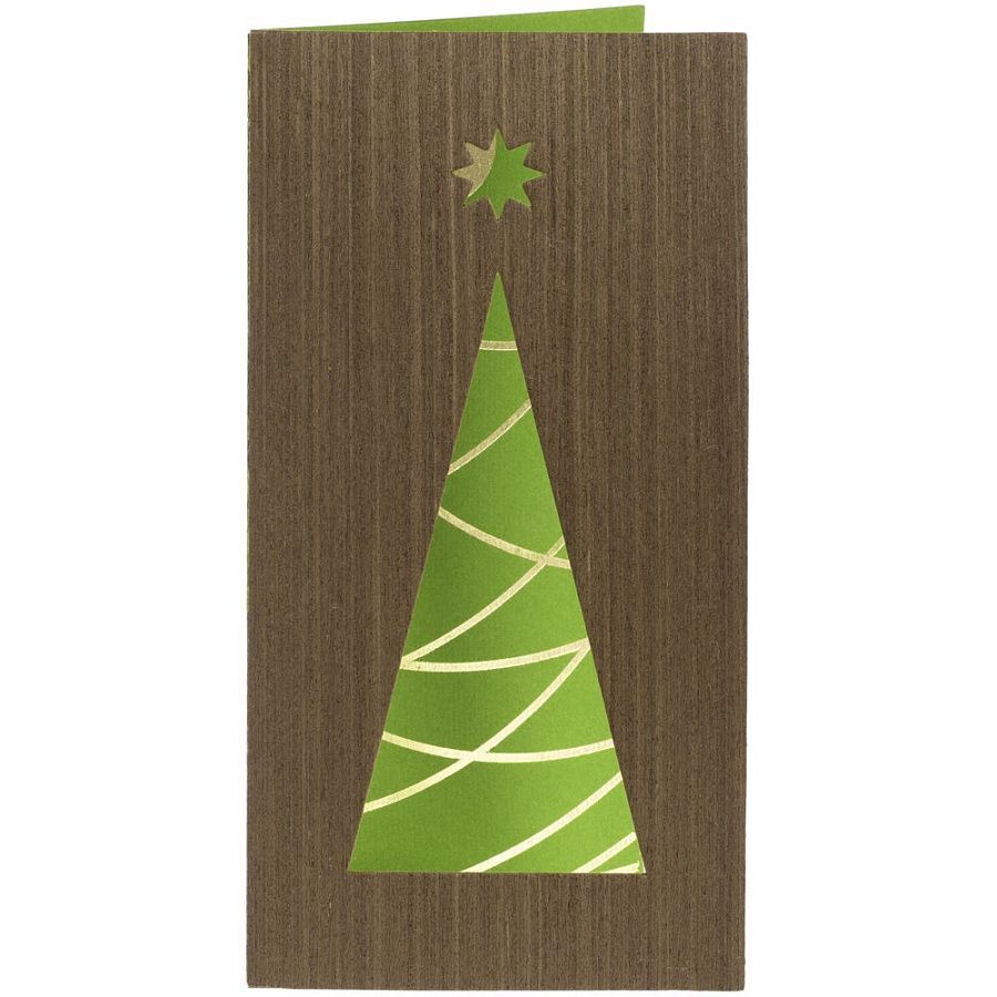 Под сдержанной обложкой из шпона венге скрывается настоящая праздничная феерия — яркая дизайнерская бумага, тисненая фольгой.
