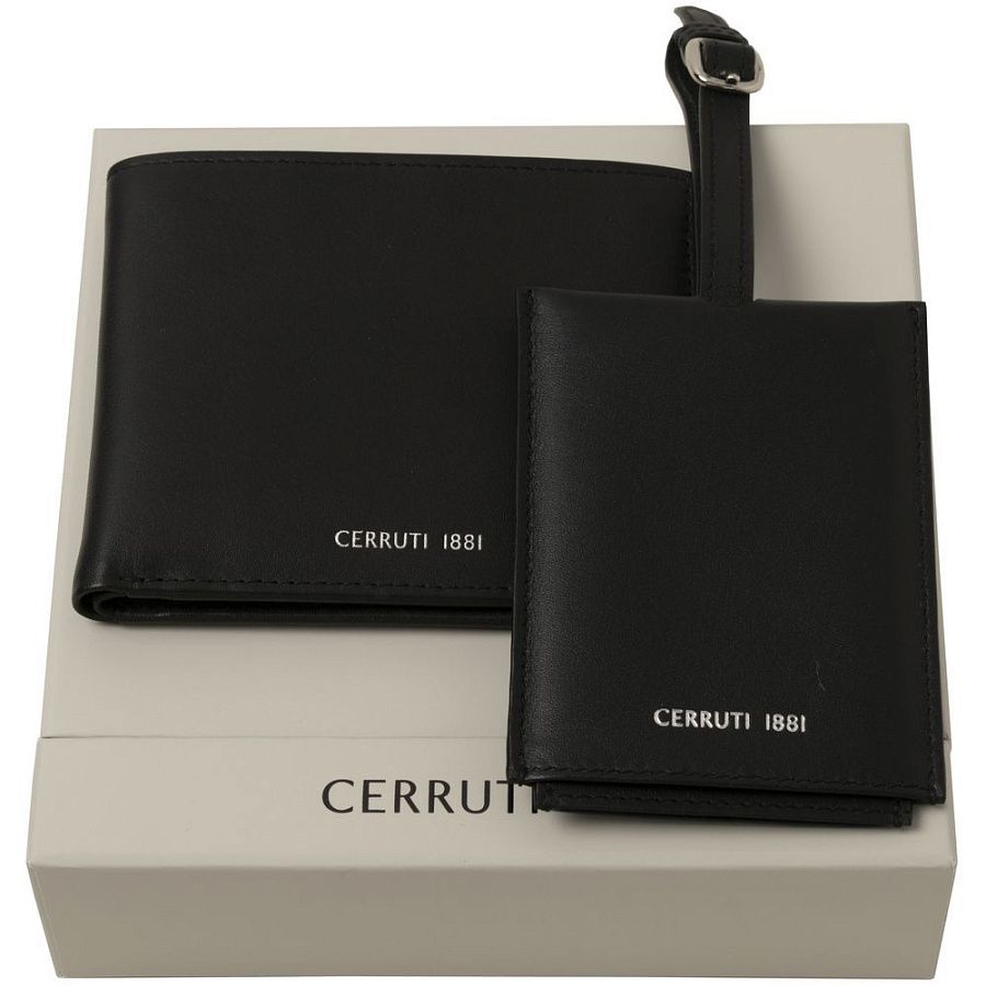 Кошелек и бирка из гладкой кожи с серебристым логотипом бренда Cerruti 1881.В набор входит: