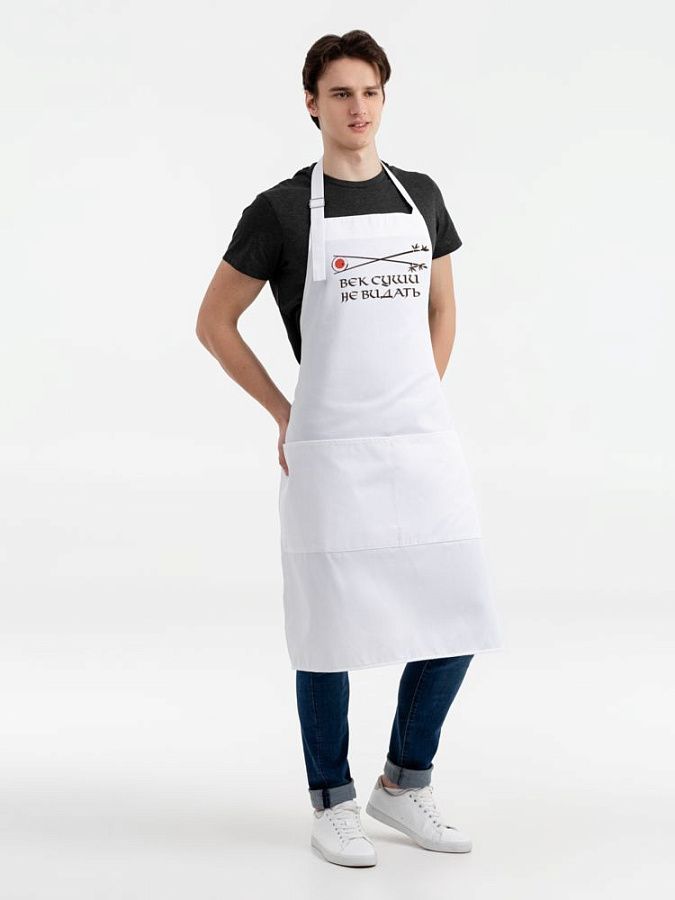 Фартук с регулируемой лямкой и двумя карманами. Глубина карманов 24,5 см.