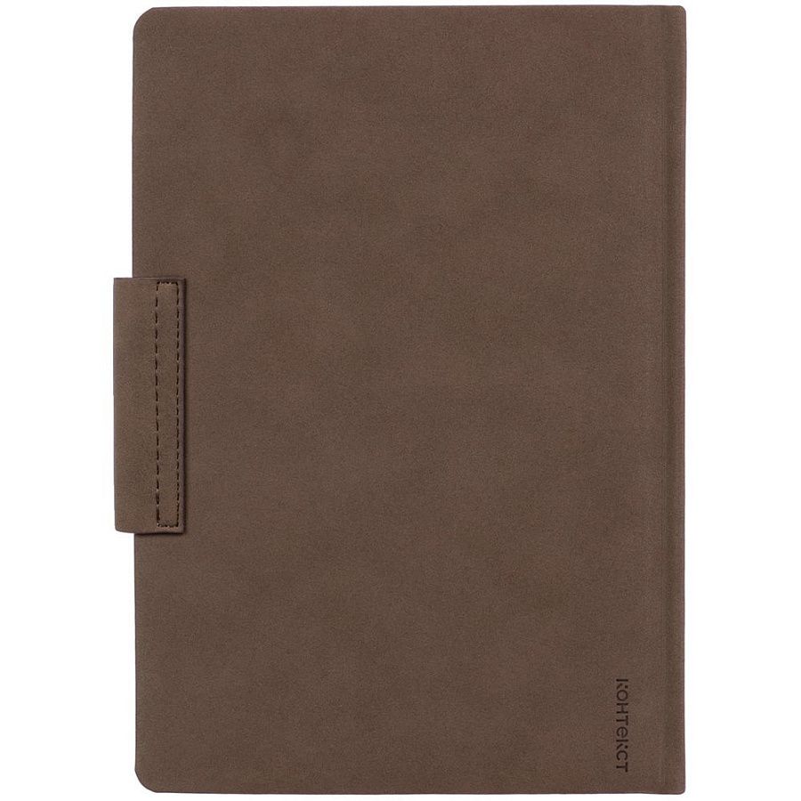 Ежедневник с твердой обложкой c поролоном, выполнен из материала Nubuck, темно-серый ЕЕ, дополнен капталом и ляссе черного цвета. Застежка — магнитный хлястик.