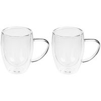 Кружки выполнены из боросиликатного стекла и предназначены для подачи холодных и горячих напитков. Стенки кружек не нагреваются, обеспечивая комфорт и безопасность использования.В наборе 2 кружки. Емкость 300 мл.