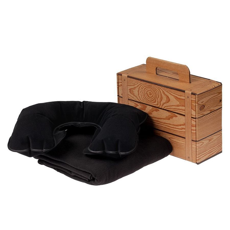 подушка: 44х28 см; чехол: 18х11 см; плед: 100х140 см; коробка: 28х23,5х10,2 см