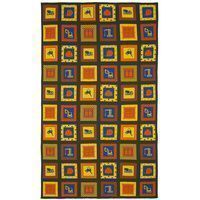 В каждой части общего рисунка, напоминающего лоскутное шитье, изображены главные символы строительной отрасли.