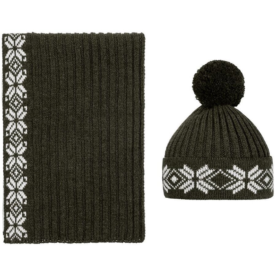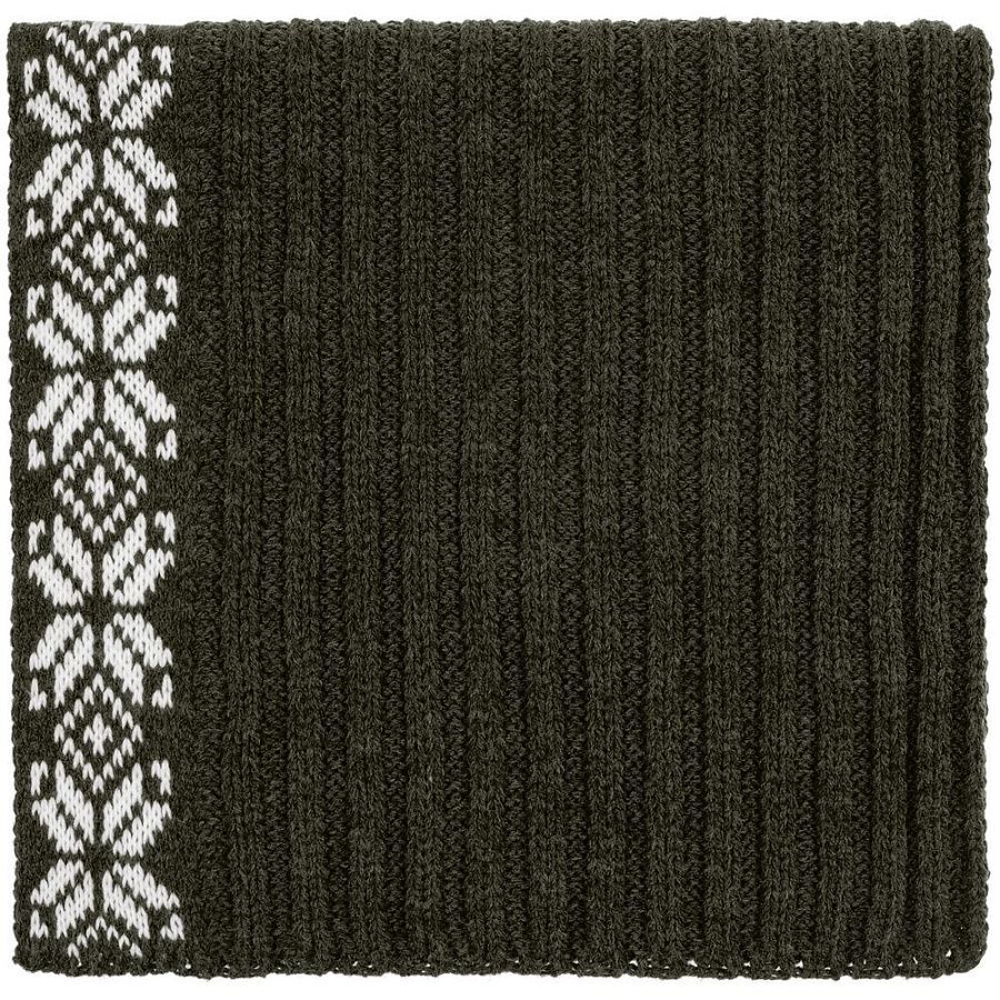 Выполнен с совмещением фактурной вязки и жаккардового узора.