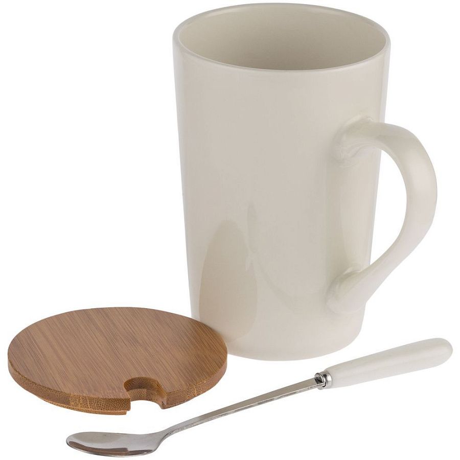 фарфор; крышка - бамбук; ложка - нержавеющая сталь