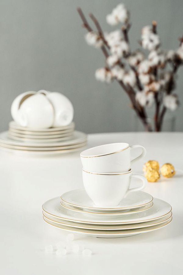 Коллекция Medina Gold от Seltmann — это легкий, почти невесомый кремовый фарфор с классическим золотым ободом. Качественное исполнение и превосходные материалы позволяют использовать кофейную пару Medina ежедневно и начинать с роскоши и удовольствия каждое утро, а не ждать особого случая.