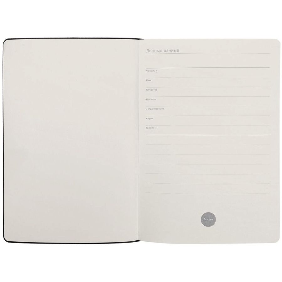 Ежедневник с гибкой обложкой, выполнен из материала Latte, темно-серый, дополнен ляссе в цвет обложки.