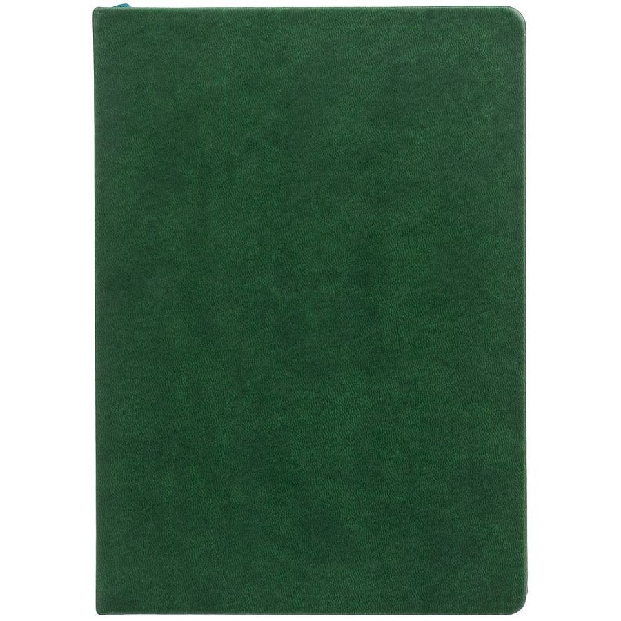Ежедневник с гибкой обложкой, выполнен из материала Latte, зеленый, дополнен ляссе в цвет обложки.