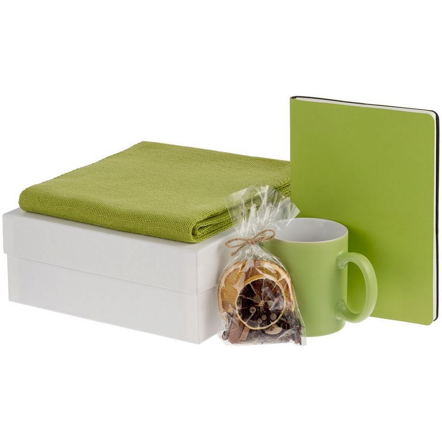 Оригинальный стильный шарф станет модным акцентом в деловом гардеробе и согреет в прохладную погоду. Яркая кружка идеально подойдет для любимых напитков и создаст атмосферу уюта даже во время напряженного рабочего дня. А для дополнительного заряда энергии в наборе есть вкусный и полезный снек, который поможет поддержать бодрость духа.