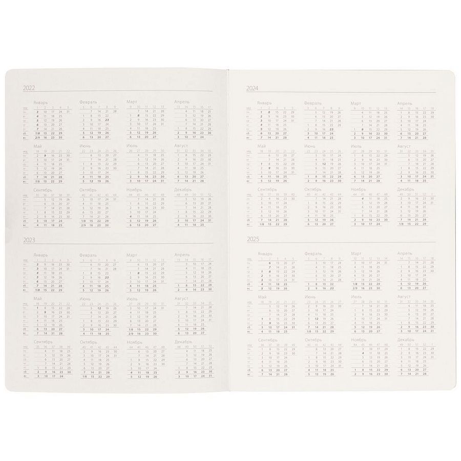 Гибкая обложка ежедневника выполнена из материала Soft Touch Pearl, черный АА и цветного Latte (внутренняя часть обложки).