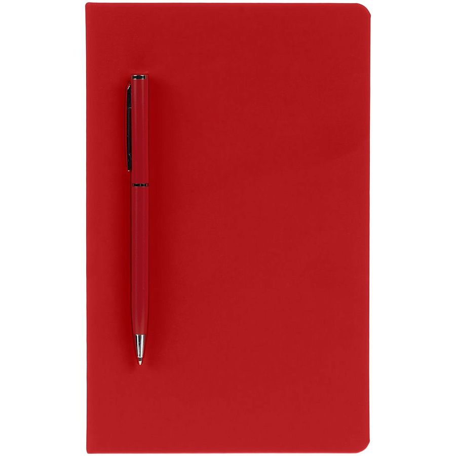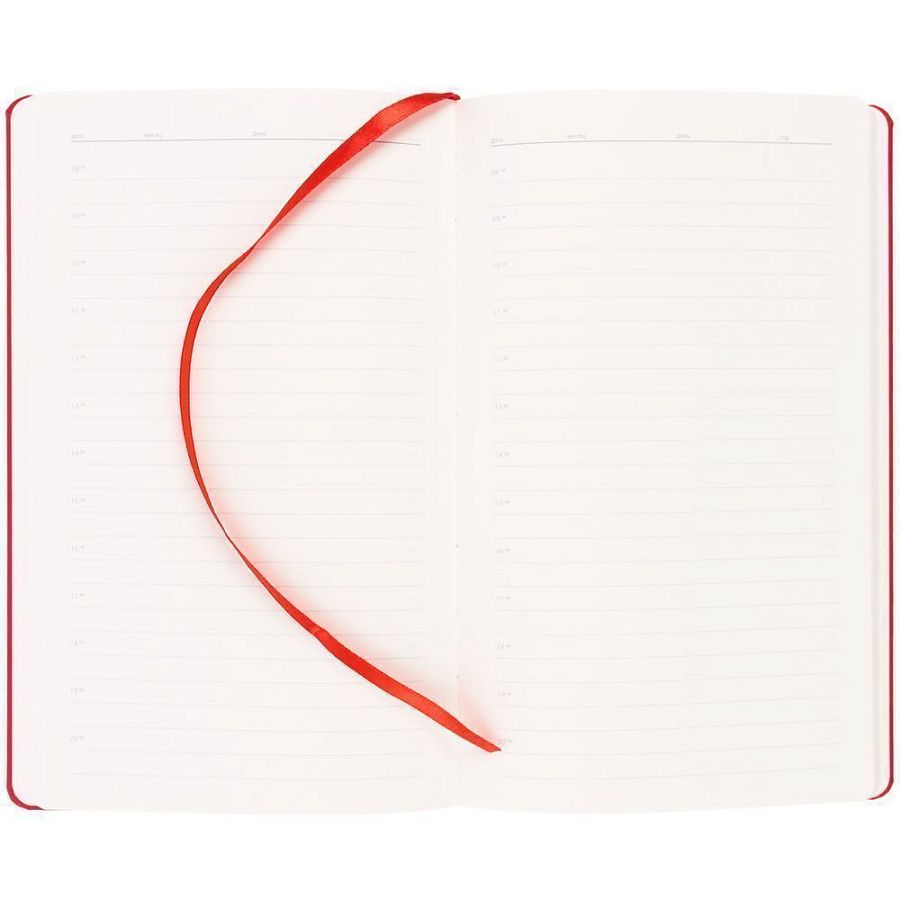 Ежедневник в твердой обложке, выполненной из материала Soft Touch Ultra, красный РР, дополнен цветным ляссе и магнитом, удерживающим ручку.