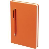 Ежедневник в твердой обложке, выполненной из материала Soft Touch Pearl, оранжевый ОО, дополнен цветным ляссе и магнитом, удерживающим ручку.