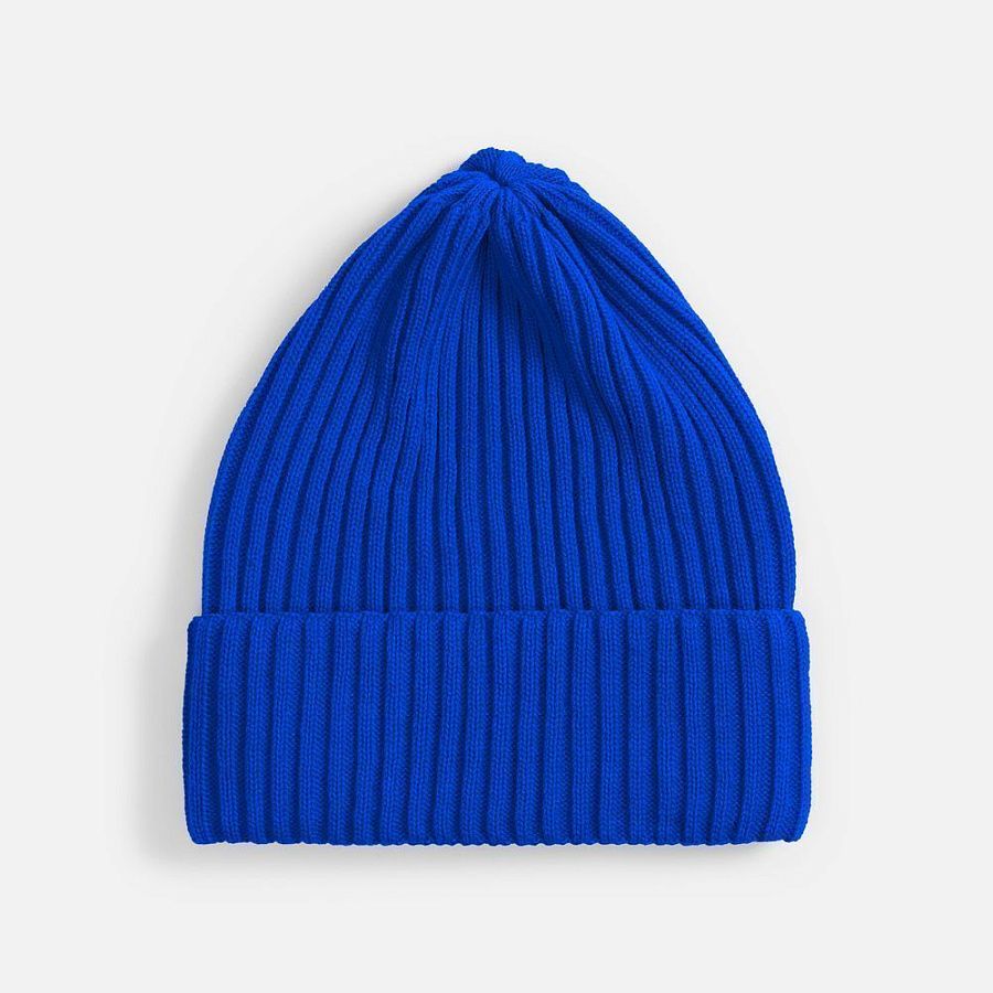 Однослойная шапка фактурной вязки с двойным отворотом.