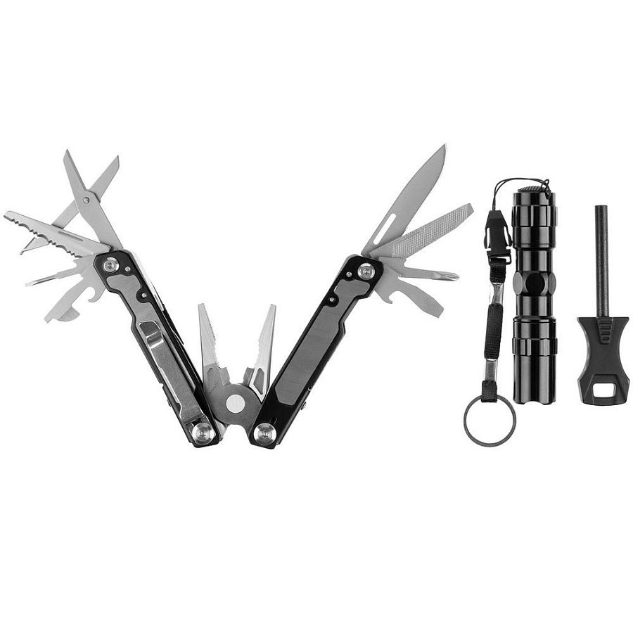 мультиинструмент - нержавеющая сталь; фонарик - алюминий; чехол - нейлон