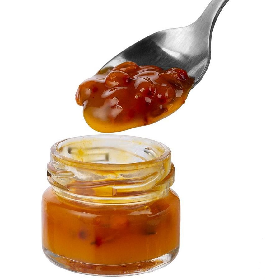 Джем из облепихи обладает приятным сладким вкусом и ярким неповторимым ароматом.Вес 25 г.