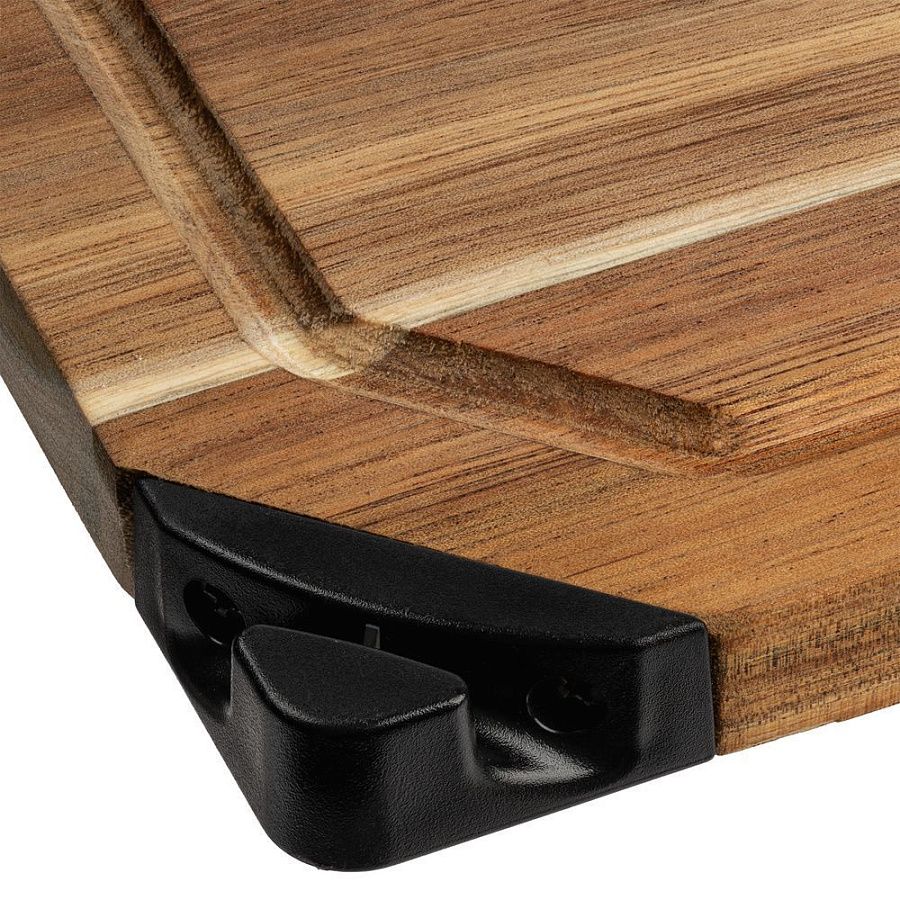 Доска изготовлена из акации — твердого и прочного дерева, привлекающего внимание своей живописной, неповторимой текстурой. Отличительной особенностью доски является встроенная точилка для ножей, которой удобно пользоваться во время готовки.