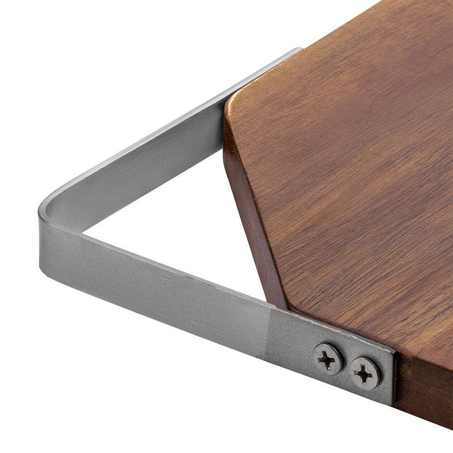 Качественная разделочная доска — необходимый предмет на любой кухне. Доска выполнена из прочного материала — древесины акации. Она обладает высокой твердостью, водоотталкивающими свойствами. Для удобства размещения на стене в верхнем углу предусмотрен подвес из металла.Доска поставляется в пакете.