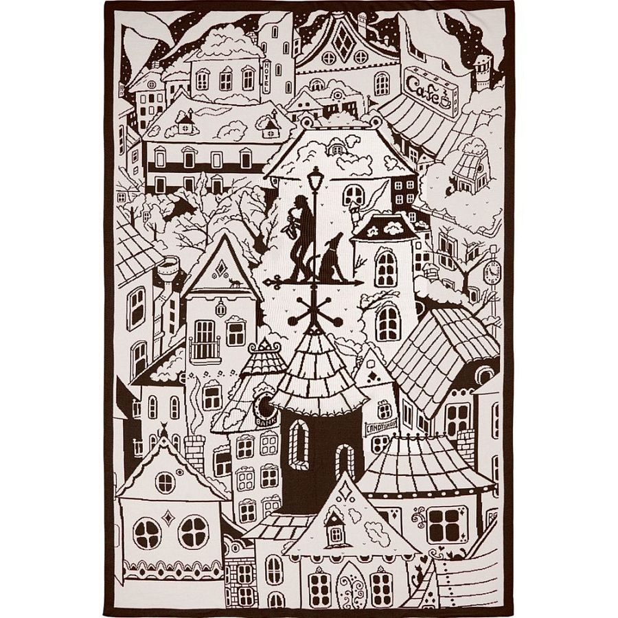 Модель: плед жаккардовой вязки, гладкая поверхность. Вязание в 2 цвета.