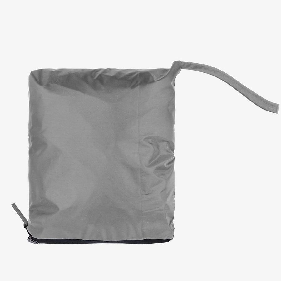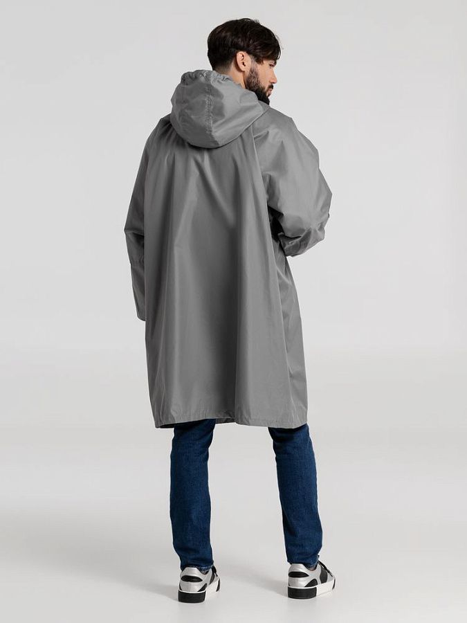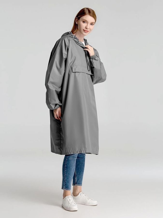 Дождевик-анорак с капюшоном и карманом на молнии спереди. Выполнен из ткани дюспо с матовой поверхностью — легкой, мягкой на ощупь, но устойчивой к повреждениям. Она не шелестит и практически не мнется. Благодаря пропитке дюспо обладает отличными водоотталкивающими и ветрозащитными свойствами.