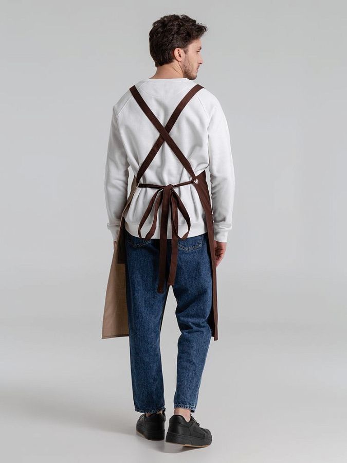 Фартук с длинными регулируемыми лямками и удобными карманами.