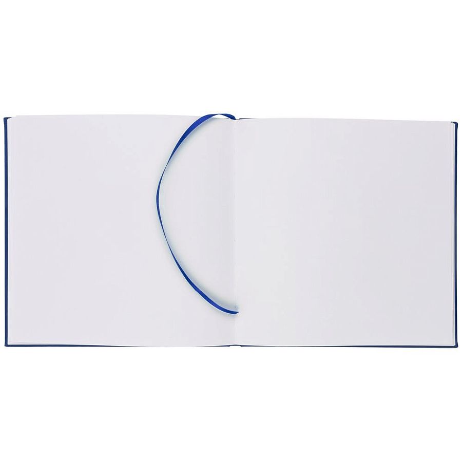 Скетчбук с твердой обложкой выполнен из материала Soft Touch, синий НН, дополнен ляссе в цвет обложки.
