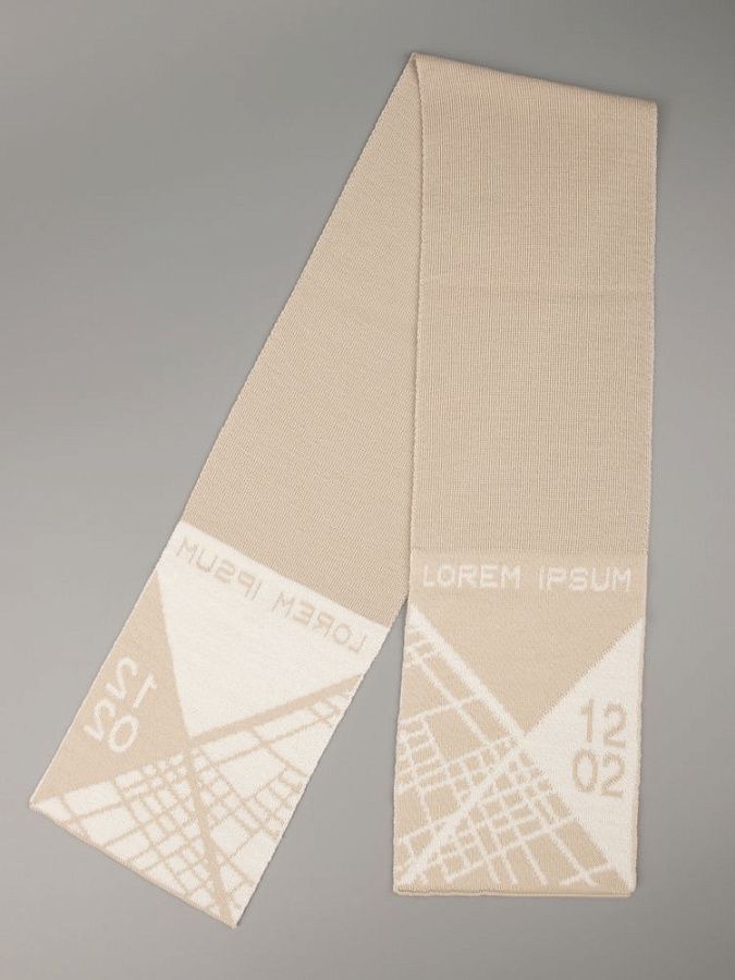 Шарф с вывязанным логотипом и/или индивидуальным рисунком в фирменной цветовой гамме.