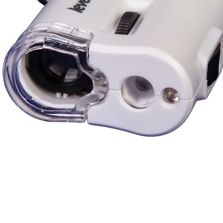 Микроскоп может применяться как для проверки подлинности денежных знаков, так и для обычных визуальных наблюдений. Увеличение оптики составляет 60 крат. Интенсивность работы подсветки можно регулировать переключателем на корпусе. Настройка резкости выполняется с помощью удобного крупного колеса грубой фокусировки.В комплект входит чехол из полиэстера.