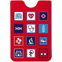 В каждой части общего рисунка изображены главные медицинские символы.Футляр можно использовать для хранения пропуска, пластиковой карточки или проездного билета.