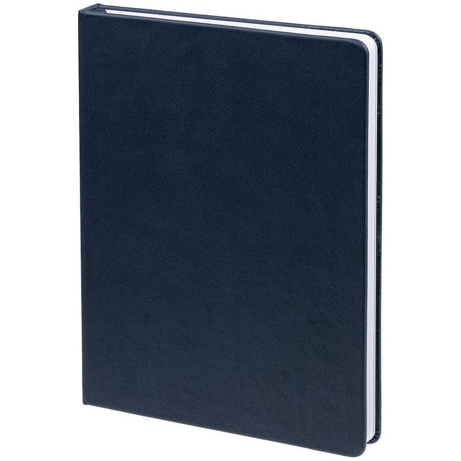 Ежедневник с твердой обложкой. Выполнен из материала Latte, темно-синий, дополнен ляссе в цвет обложки.