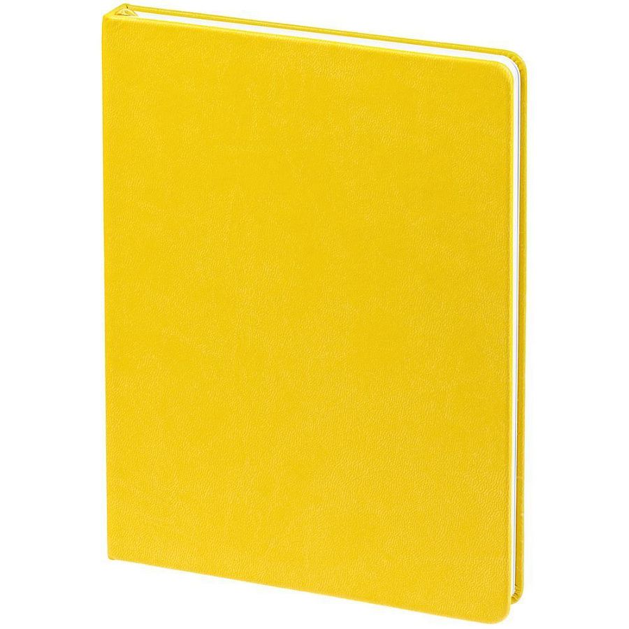 Ежедневник с твердой обложкой. Выполнен из материала Latte, желтый, дополнен ляссе в цвет обложки.