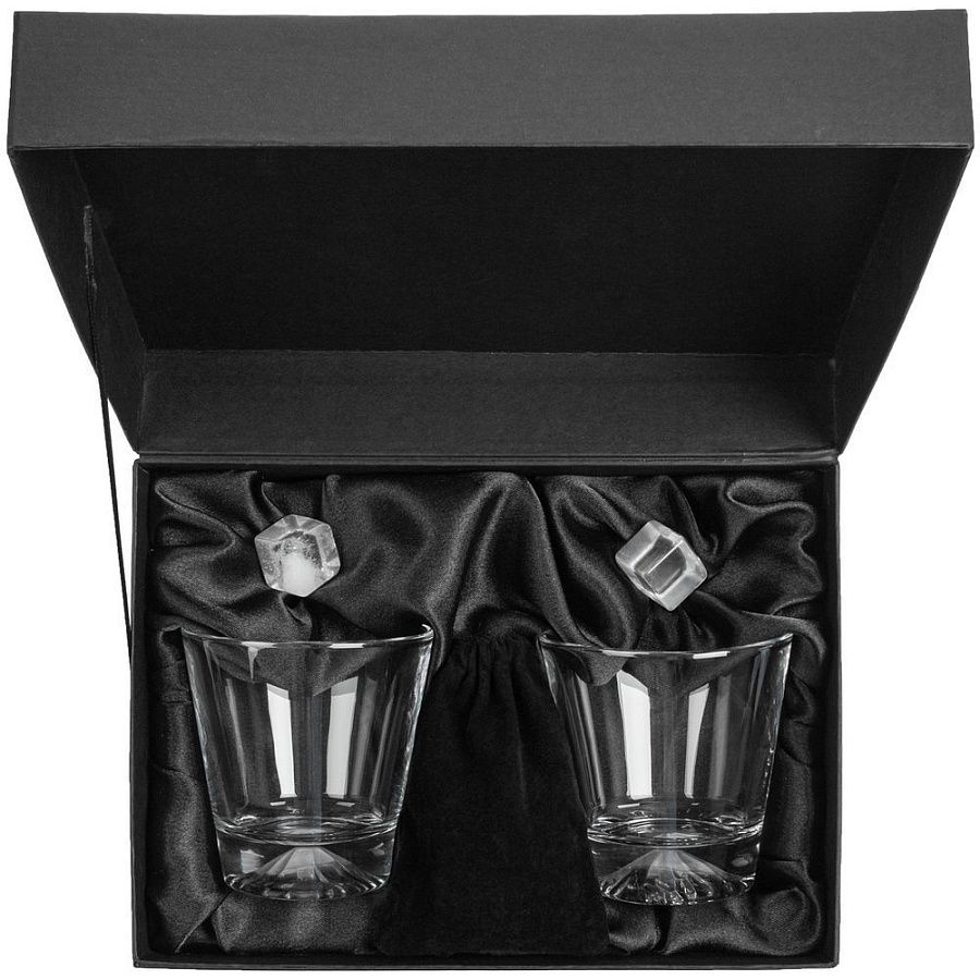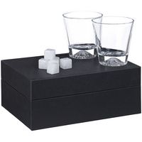 В наборе: 2 бокала, 6 камней для охлаждения напитка, бархатный мешочек для удобного хранения камней, подарочная коробка.