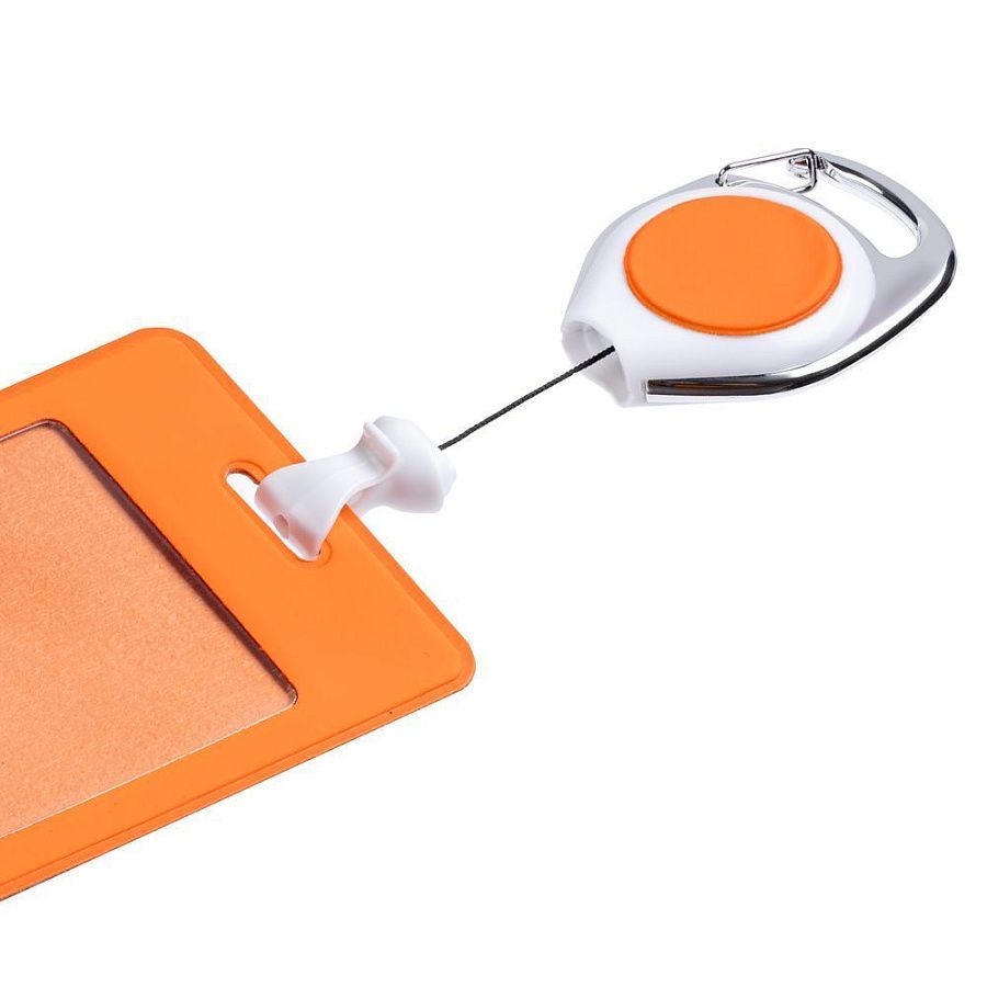 Ретрактор крепится к одежде с помощью клипа или карабина, а с другой стороны на можно подвесить бейдж, пропуск или магнитную карту. В корпусе спрятан сворачивающийся шнур, который позволяет при необходимости демонстрировать содержимое держателя, не снимая его.