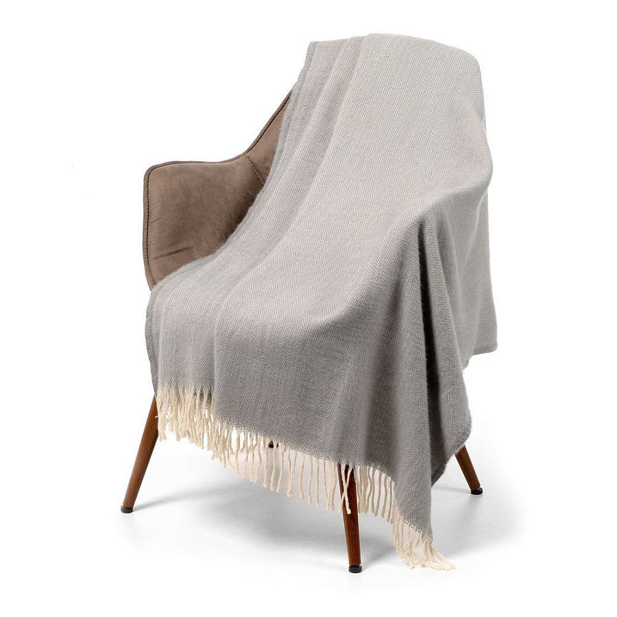 Плед с бахромой Bilbo приглушенного пастельного оттенка из натуральной новозеландской шерсти — это возможность без лишнего пафоса пожелать процветания и благополучия своему деловому партнеру.
